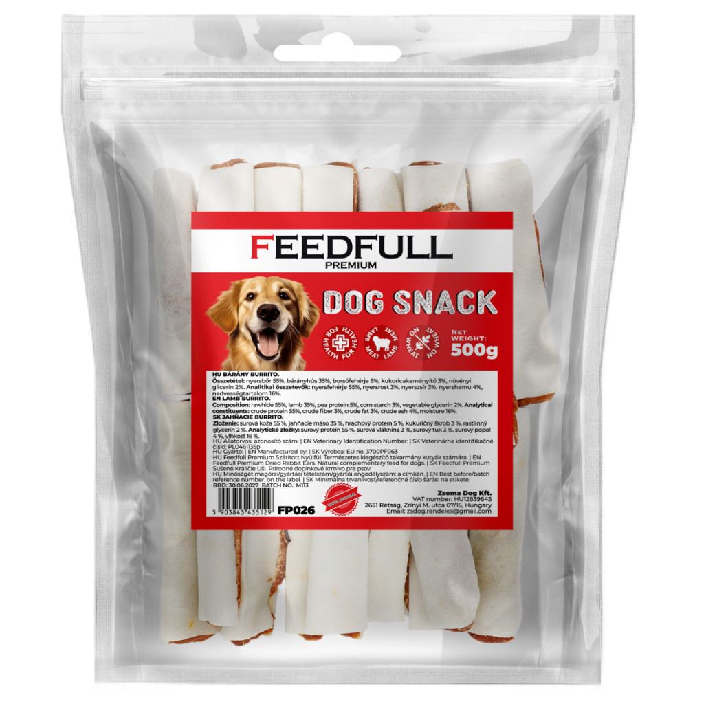 Feedfull Prémium Bárány burritó kutya jutalomfalat 500g (FP026)