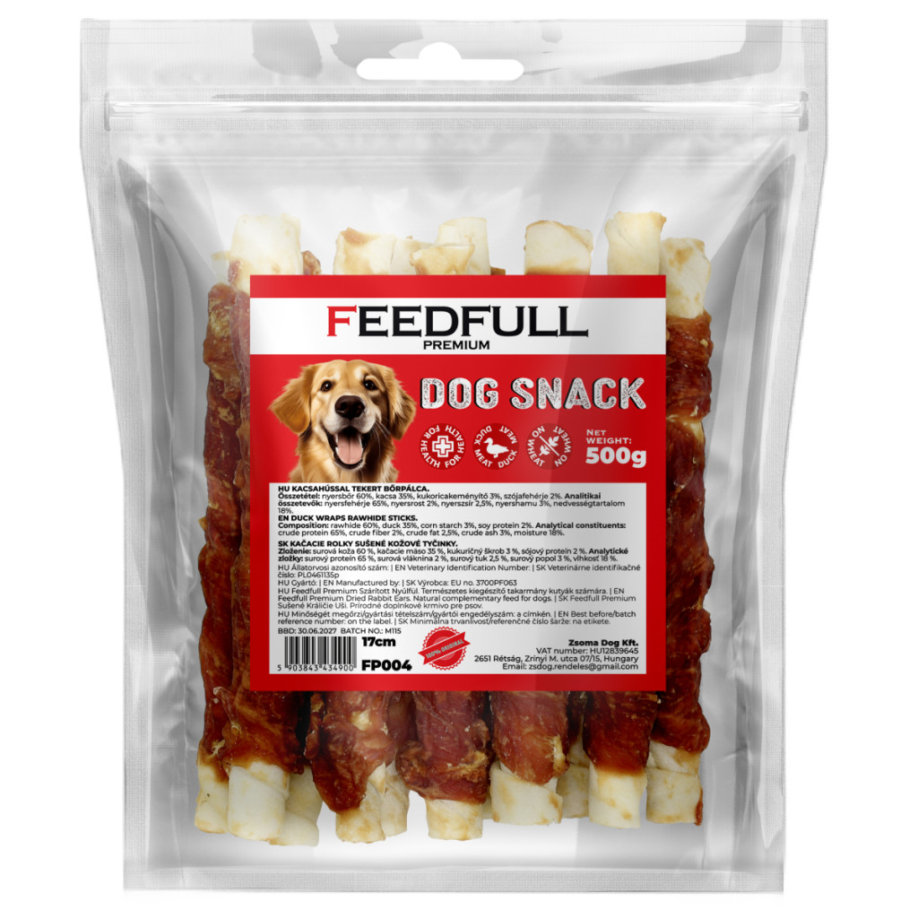 Feedfull Prémium Kacsahússal tekert bőrpálca 17cm kutya jutalomfalat 500g (FP004)